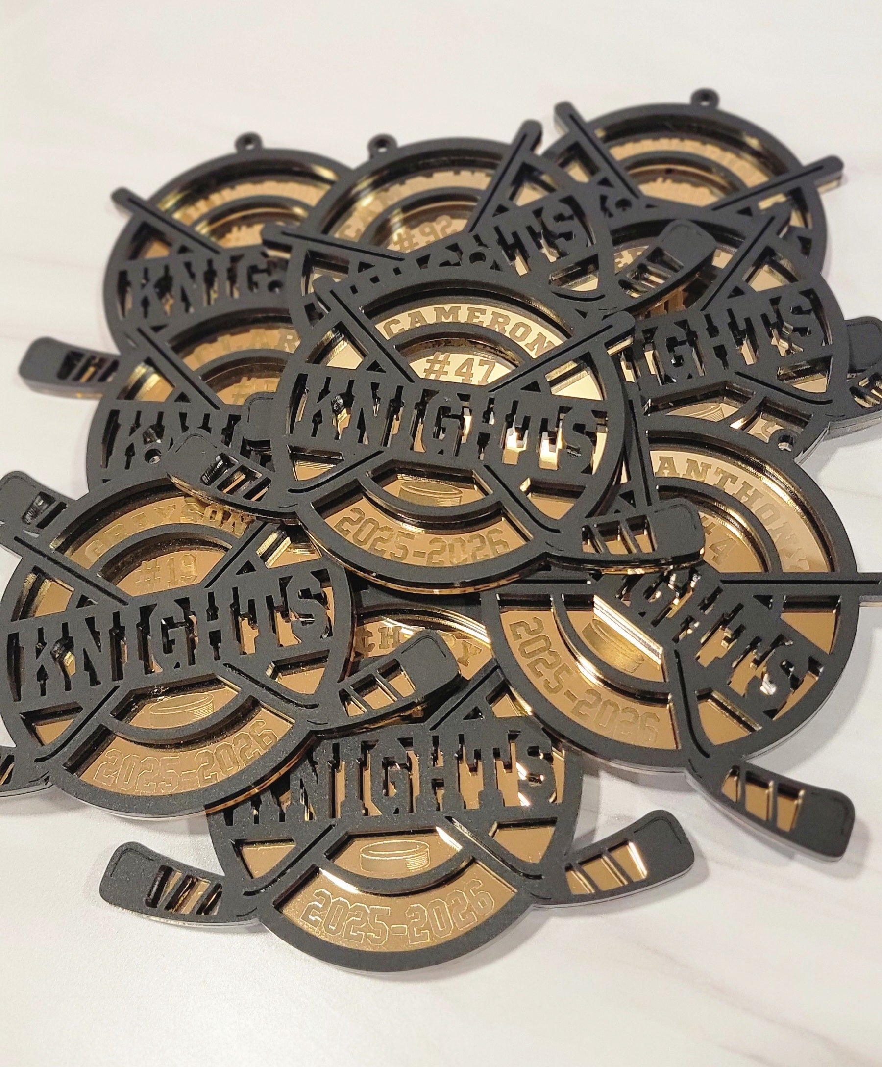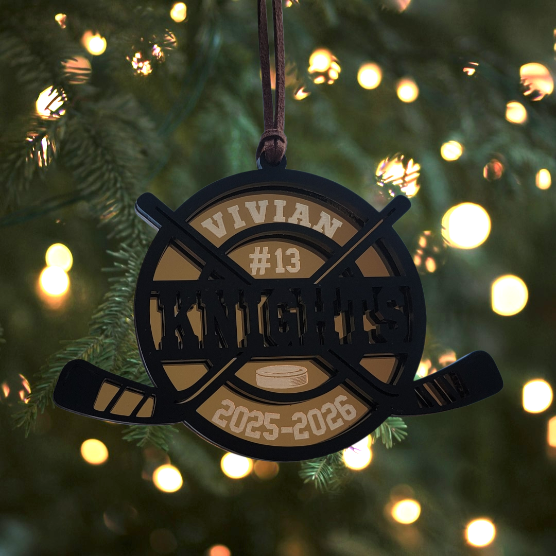 Deck the tree in team pride with a personalized keepsake featuring the player’s name, number, and year precision-engraved on premium gold acrylic for a bold, high-contrast look that stands out beautifully against any tree.